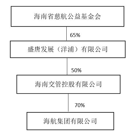 第一财经记者查阅公开披露的相关资料发现,目前海南交管控股有限公司持有海航集团70%股权,为公司的控股股东,而海南省慈航公益基金会(下称“慈航基金会”)通过控股盛唐发展(洋浦)有限公司65%的股权,(后者持有海南交管控股有限公司50%的股份),间接控制海航集团22.75%的股权。